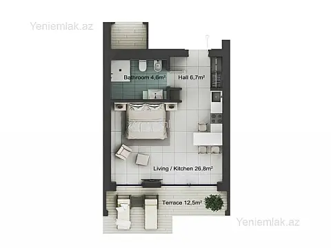 Kirayə verilir 1 otaqlı həyət evi 60 m²