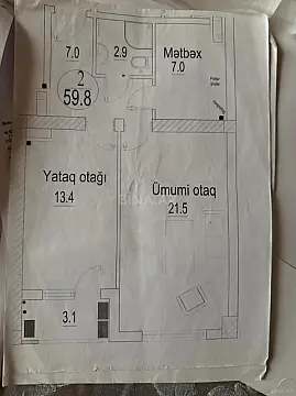 Kirayə verilir 2 otaqlı mənzil 60 m²