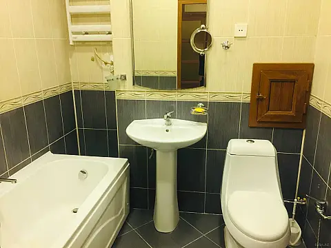 Mənzil yaşayış üçün lazımi şəraitlə təmin olunub: qonaq və yataq dəsti, mətbəx avadanlığı, 2 ədəd kondinsioner, TV, fiber-optik Wi-fi Internet (100 mb/s), paltaryuyan maşın, soyuducu, mərkəzi kilid və s. var. Mənzildə istilik sistemi kombidir. Su, qaz, işıq daimidir. Binanın yaxınlığında avtobus dayanacağı, Mərkəzi Nəbatat Bağı, 20 nömrəli məktəb-lisey mövcuddur. Xidmet haqqi 30%