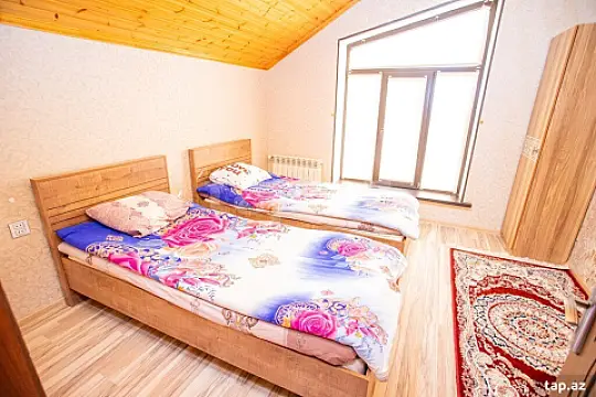 Qeçres yolu meşe tuneline catmamiş 2 yan yana eyni weraitde yerlesen evlerimizi teqdim edirik. 1 ci mertebede metbex, qonaq otaği, sanzuel, 2 mertebede ise 3 yataq otagi var. 3 aile rahat isdirahet ede biler. Wifi,besetka, manqal,samovar,konbi var. Evin çaya baxis menzeresi var.Gun sayi, adam sayi,bayram gunlerine gore qiymet deyisir.Maklerler narahat etmesin!