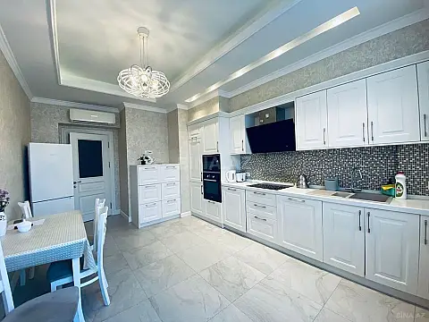 Хатаинский район, в Белом Городе, в элитной новостройке сдаётся 3-х комнатная квартира. Отличный ремонт. Этаж 5/7. Общая площадь 130 кв.м., паркетные полы с подогревом, высокие потолки. 2 с/у. Новая гостиная и спальная мебель. КАТВ, интернет-wifi, 1 плазменный телевизор, 3 сплит-кондиционера. Встроенная кухня с бытовой техникой. Отопительная система “ Комби”. Гардеробная комната. 2 открытых балкона. Охраняемый двор, 1 скоростной лифт, парковочные места, подземный гараж, детская площадка. --------------------------- Xətai rayonu, “Ağ Şəhər”-də, tam yaşayışlı yeni tikilidə 3 otaqlı mənzil kirayə verilir. Yüksək keyfiyyətli əla təmir. Mərtəbə: 5/7. Ümümi sahəsi 130 m2., Parket döşəmə, döşəmə qızdırıcısı, hündür tavan. 2 s/q. Yeni qonaq və yataq dəsti. KATV, internet-wifi, 1 plazma TV, 3 split-kondisionerlər. Quraşdırılmış mətbəx mebeli və texnikası. İstilik sistemi “Kombi”. Ayrıca qarderob otağı var. 2 açıq eyvanı. Mühafizə olunan həyəti, 1 sürətli lift, yerüstü və yeraltı avto dayanacaqlar, uşaq meydançası. --------------------------- Khatai district, White City, in the new building 3 rooms apartment for rent. 1 living room, 2 bedrooms. View to the sea. Floor 5/7. The total area of 130 sq.m, 2 balconies. 2 bathrooms. Excellent conditions. The new living room bedroom furniture. Heating system Comy . KATV, Internet, 1 plasma TV. 3 air conditioners. Fitted kitchen with appliances. 24- hour security, 1 lift, car parking.