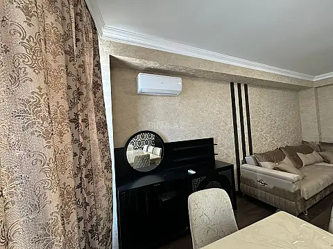 -- Üstünlüklər: - Tam əşyalı və yaşayışa hazır - İşıqlı və geniş otaqlar - Kondisioner, TV, mebel, məişət texnikası - İstilik sistemi kombidir