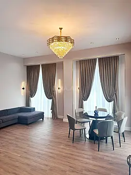 Sizə "Knightsbridge Residence" yeni premium yaşayış kompleksində yeni, böyük 3 otaqlı mənzilin kirayəsini təklif edirik. Kompleks Ağ Şəhərdə yerləşir, mənzil ən prestijli korpusda yerləşir Courtyard 6. Mənzil birbaşa dənizə baxır. Mənzil yeni təmirlidir və qismən əşyalıdır. Mənzil böyük zal, ayrıca mətbəx, 2 böyük yataq otağı, 2 hamam və bir qarderob otağından, həmçinin qonaq hamamından ibarətdir. Küçədən və həyətdən iki girişi var. Tavan hündürlüyü 3.7 m. Mənzilin sahəsi 157 m2.