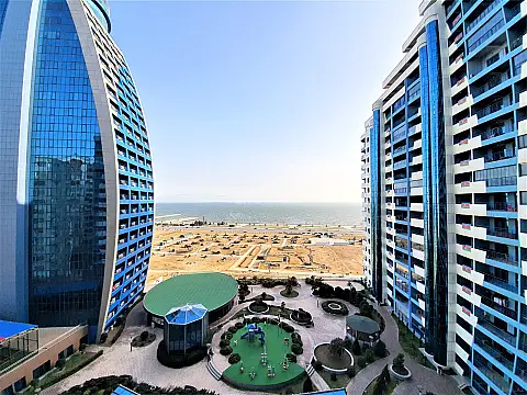 Xətai rayonu, Megafun əyləncə mərkəzininin üstü, tam yaşayışlı yeni tikilidə 3 otaqlı mənzil kirayə verilir. Ümumi sahəsi 200 kv.m., 16/27. Dənizə gözəl mənzərəsi olan 3 açıq eyvanı. Əla təmirli, 2 s/q, KATV, internet, 3 plazma tv, mərkəzi istilik və kondisioner sistemi. Quraşdırılmış mətbəx mebeli və texnikası. Mühafizə olunan həyəti, yeraltı qarajı var. ----- Хатаинский район, над развлекательным центром Мегафан, в полностью заселённой новостройке сдаётся 3-х комнатная квартира. Панорама на море. Этаж 16/27, общая площадь 200 кв.м. Отличный ремонт, 2 с/у. КТВ, интернет, центральная система отопления и кондиционирования, 3 плазменных телевизора. Большая встроенная кухня с бытовой техникой. Охраняемое здание, подземный гараж. (Табриз)