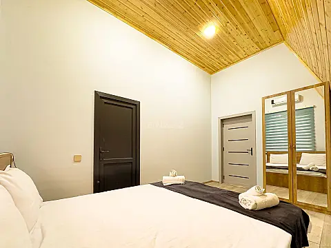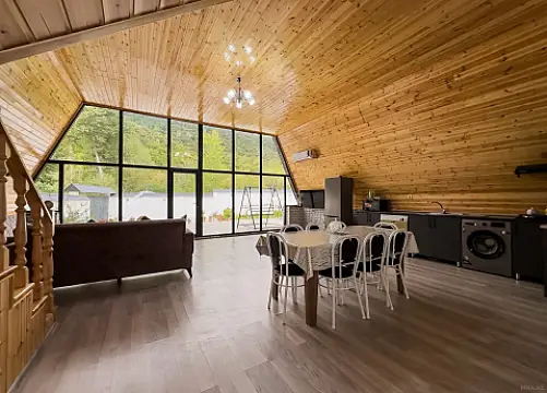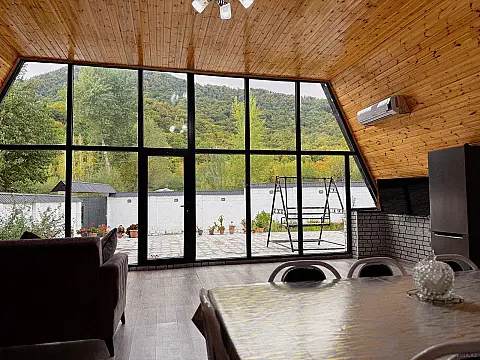 Qəbələ şəhərinin tam mərkəzində 4 otaqlı Lüks A-Frame Villa – isti hovuzlu, yüksək komfortlu istirahət məkanı Təbiətlə iç-içə, modern memarlıq üslubunda inşa olunmuş bu 4 otaqlı lüks A-Frame villa rahatlıq, estetika və komfortu bir araya gətirir. Geniş panoram pəncərələri, müasir interyeri və tam təchiz olunmuş şəraiti ilə həm ailəvi istirahət, həm də dostlarla keyfiyyətli vaxt keçirmək üçün ideal seçimdir. 🏡 Villa haqqında • 4 geniş və komfortlu yataq otağı • İşıqlı və modern dizaynlı zal • Studio tipli tam təchizatlı mətbəx • İlin bütün fəsillərində istifadə olunan isti hovuz • 4 hamam-sanuzel (hər otağa uyğun rahatlıq) • Kondisioner, Wi-Fi və Smart TV • Müasir və keyfiyyətli mebellərlə təmin olunub 🌿 Həyət və istirahət zonası • Özəl və sakit həyət • Besedka və istirahət guşəsi • Manqal sahəsi... • Axşam istirahəti üçün ideal atmosfer Bu A-Frame villa həm dizaynı, həm də təqdim etdiyi komfortla qonaqlara unudulmaz istirahət təcrübəsi bəxş edir. Həftəsonu qaçışı, ailəvi istirahət və xüsusi günlər üçün mükəmməl seçimdir.