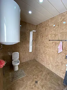 В поселке Шувелан рядом с храмом Мир-Мовсум Ага сдается загородный дом. На участке два строения. Общая площадь 125 кв.м. Основной дом состоит из 3 спален, гостиной, кухни, ванной комнаты и туалета. Дополнительное однокомнатное строение площадью 25 кв.м. представляет собой отдельный гостевой дом. Во дворе есть навес (30 кв.м) и бассейн (9х4 м.). Бассейн имеет фильтрующую циркуляцию воды и ночное освещение. Интернет есть. Пляж находится в 3 минутах езды на машине или 10 минутах пешей прогулки. ЦЕНА аренды за месяц – 5 000 AZN