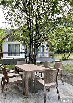 Zəng edərkən qalacağınız tarixləri və qonaq sayını mütləq qeyd edin !! Evlərə giriş saatı 14:00, çıxış saatı isə 12:00-dur. NS House - 9-10 nəfərlik,böyük həyəti olan,Dağ ətəyindəki Zaqatalanın Car kəndində çayın qırağında yerləşən 2 mərtəbəli piramida tipli evin: böyük salon-mətbəx(studiyası), 1 ci mərtəbədə 2 yataq otağı və sanuzel.,2 ci mərtəbəsi açıq yataq otağı. 1 yataq otağında 2 nəfərlik taxt. 1 yataq otağında 2 dənə 1 nəfərlik krovat 2 ci mərtəbədə 4 dənə 1 nəfərlik krovat. Salonda künc divan,açılan. Həyətində oturmağa ağacın altında stol və stullar,həyətin işıqlandırması vardır. Ətraflı şəkillərdən baxa bilərsiz. Əlavə məlumatlar:Qaz,Su,İnternet,Tv,Paltaryuyan,Kondisioner.,Samovar.,Manqal və s. Evin Günlük Qiyməti 130 azn. Ev 9-10 nəfərlikdir. Qiymətdə qalma müddəti və adam sayına baxıb, razılaşmaq olar. Vasitəçilik üçün Xidmət haqqı 20 AZN.