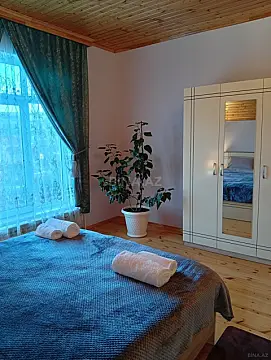 İcarəyə verilir 6 otaqlı həyat evi/bağ evi 180 m² Xoş istirahət üçün təmiz geniş, gözəl, rahat 9 nəfərin qala biləcəyi bir ev. Evdə hər bir şərait var, 4 yataq otağı, qonaq otağı, mətbəx, hamam otağı, sürətli internet, istilik sistemi, isti soyuq su, soyuducu, qaz sobası, elektrik çaydan,mikrodalğalı soba, paltar yuyan maşın, tozsoran, ütü, ütü masası, paltar qurudan, fen, qab qacaq, təmiz yataq dəsti, üz və bədən dəsmalları, təmizlik vasitələri, bağda əlavə sanitar qovşağı ,besedka,yay mətbəxi , manqal, və s. Həyətdə 2 maşın rahat saxlayacaq parking yeri .Günlük kirayəsi 2 nəfər 115₼, 9 nəfərədək hər adama 10₼ olmaqla dəyişir. Evin içində siqaret çəkmək, ayaqqabılarla gəzmək, heyvan gətirmək olmaz. Rezervasiya zamanı təhlükəsizlik məqsədilə evdə qalacaq şəxslərin şəxsiyyət vəsiqələrini təqdim etməsi mütləqdir. Rezervasiyada qeyd olunmayan şəxslərin evdə qalması və girməsi qadağandır