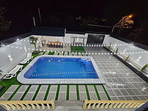 🏡 QƏBƏLƏDƏ LÜKS AFRAME VİLLA. Uşaqlı ailələr üçün sakit və stresssiz istirahət Bu ev şənlik üçün deyil. Bu ev ailə ilə dincəlmək üçündür. ⭐ ƏSAS ÜSTÜNLÜKLƏR 🏊 Böyük isti hovuz (pilləkənli – uşaqlar və böyüklər üçün rahat) 🛏 4 yataq otağı 👨👩👧👦 11 nəfərlik tam yataq 🚿 5 hamam & WC (3-ü otaqların içində) 🌄 Dağ mənzərəli qapalı balkon ✨ Gecə işıqlandırması – gözəl foto/video görüntülər 🏡 Lüks və zövqlü interyer 🛋 KOMFORT 📺 Android TV 📶 Optik sürətli Wi-Fi ❄️ Hər otaqda kondisioner 🛌 Bambo döşəkli yumşaq çarpayılar 🔥 İstilik sistemi – istipol 🌿 HƏYƏT • Besetka • Yelləncək • Mangal 🔥 • Samovar • Tam təchiz olunmuş mətbəx 🍽 ⚠️ QEYD (VACİB) ❌ Şənlik və səs-küy üçün deyil ❌ Yalnız kişi / yalnız qadın qrupları üçün uyğun deyil ✅ Ailələr və sakitlik axtaranlar üçün idealdır
