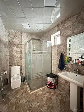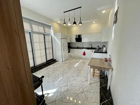 Merdekan qesebesinde yeni insa edilmis bag evi icreye verilir. Esas yola ve denize yaxin mesafede modern tipde 3 yatag otagi 2 sanuzel. Heyetde filterli hovuz yay bsetkasi manqalnisi var