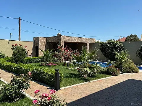 Merdekan qesebesinde yeni insa edilmis modern bag evi icareye verilir. 3 yataq otagi 2 sanuzel. Heyetde filterli hovuz bsetkasi manqalnisi var