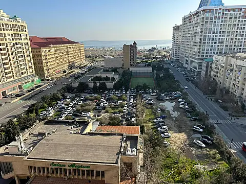 18 mərtəbəli binanın 12-ci mərtəbəsində, ümumi sahəsi 210 kv.m olan qanuni 4 otaqlı və 1 mətbəxli geniş mənzil kirayə verilir. Mənzil tam əşyalıdır. 2 sanuzeli mövcuddur. Binada 2 sürətli lift, yerüstü və 2 mərtəbəli yeraltı parking var. Gözəl dəniz mənzərəsi mövcuddur.