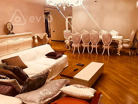 Предлагается в аренду элегантная 4-комнатная квартира (217 м²), расположенная за ISR Plaza, всего в нескольких шагах от улицы Торговая — в самом сердце Баку.