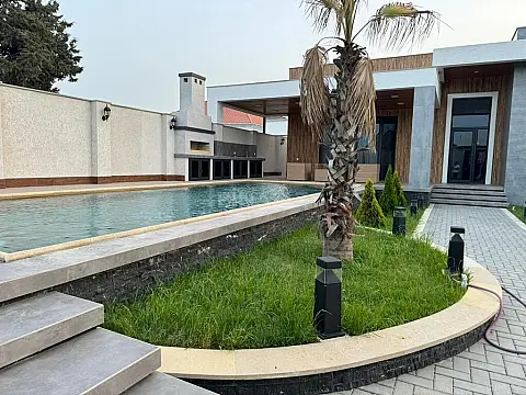Merdekan qesebesinde ideal seraitle techiz edilmis modern bag evi icareye verilir. 3 yataq otagi 2 sanuzel. Heyetde filterli hovuz yay bsetkasi manqalnisi var