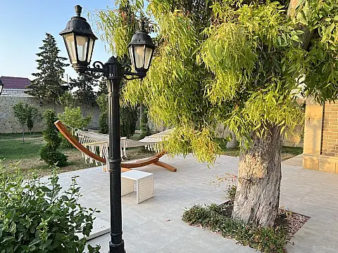 Suvelan denize yaxin dalga restorana merkezi yola yaxin mesafede modern yeni tikli 2 mertebe 5 yataq otaqi 5 sanuzel 2 qonaq zali modern metbex studio wifi smart tv kondisaner isti pol filterli hovuz leianka kacaeli nece novde parnoy letni sanuzel yay metbexi bisteka veranda balkon terass qaraj decorativ agaclar qazon bir soznen bag ideal seraitde tehcizdi icareye verlir buyrub zeng ede bilersiz