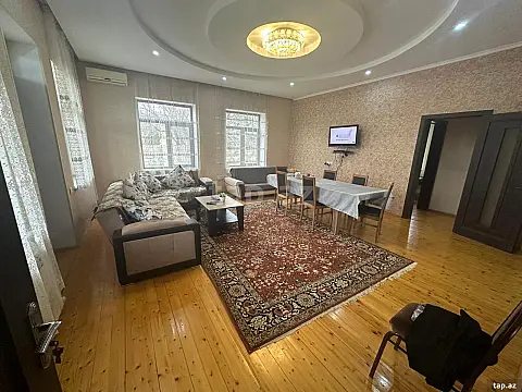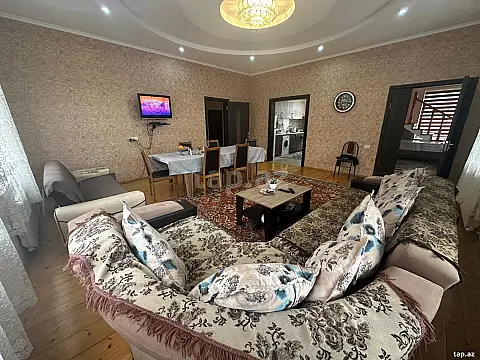 Bilgehde Merkezde her şeraiti var Qaz İsiq Su Kondisaner Kombi Basenni v.s 4yataq otaqi Metbex Mansard boyuk Zal.Yolu asfalt Dayanacaqa Marketlere yaxindi Etrafli melumat ucun Nomre ile elaqe saxlayin oz evimdi Bir gunu 100azn Ayliq isteyen olsa ayliqda verilir