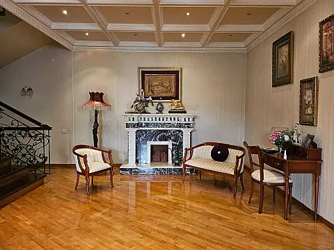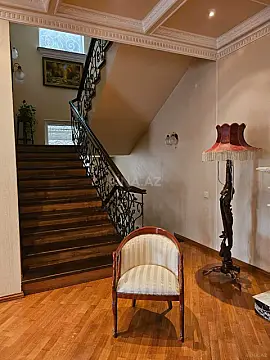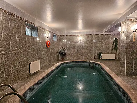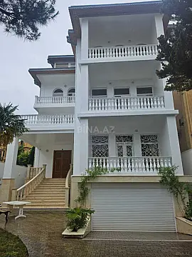 Villa 5 mertebedir 1 ci mertebe 3masinliq qarac,sauna,3*9 metr basein,trinagor. 2 ci mertebe boyuk xol,kamin,qarderob,2 yataq otagi. 3 cu mertebe Boyuk qonaq otagi,20 neferlik stol,kuxna staloviy boyuk aciq balkonla 4 mertebede 3 yataq otagi 5 mertebe 1 yataq otagi 1 boyuk otaq bar. Butun mertebelerde sanuzeller,balkonlar Heyetde oxran otagi,kotelni,generator,sanuzel Heyetde 4 masin saxlamaq olar Heyet kameralarla musahide olunur ev polis muhafizesi ile techiz olunub.Villa ATBankin arxa kucesi ve Avropa otelin arasinda yerlesir.