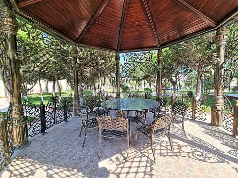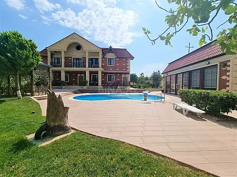 ✔ Дом включает в себя 5 спальни, зал, кухню, подсобное помещение, 4 санузлов, басейин.Также на территории участка имееется гараж на 2 машины и 2-х комнатный дом для охраны.