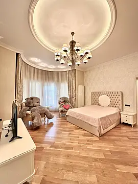 - Ümumi sahə: 400 kvm, 3 mərtəbə - Geniş, abadlaşdırılmış həyət və dekorativ yaşıl sahələr - Böyük açıq hovuz və günəşlənmə meydançası - Klassik memarlığa malik fasad, balkon və eyvanlar - İşıqlı, geniş qonaq otağı və açıq mətbəx zonası - Mətbəx mebeli və texnika ilə - Pəncərələri geniş, tavanları taxta panellərlə işlənmiş, çilçıraqlı işıqlandırma - Geniş qarderob/saxlama otağı daxildir - Səliqəli döşəmələr (parket və kafel) - Həyət boyu daş döşəmə yolları və landşaftlı gəzinti zonası - Yay mətbəxi