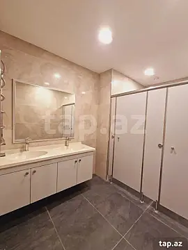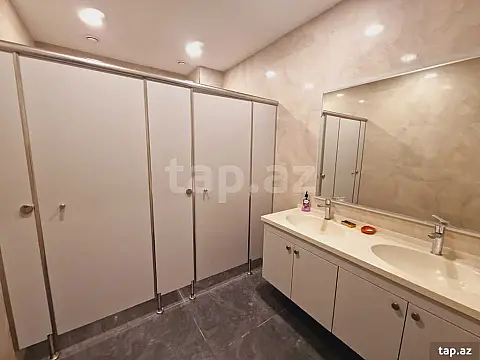 Yüksək keyfiyyətli əla təmirli! Ümumi sahəsi: 1000 kv.m., Mərtəbə: 2-3/5. Lift var. Mərkəzi istilik, soyutma və havalandırma sistemi (Mitsubishi). Mərmər döşəmə. Yüksək sürətli internet və telefon xəttləri, müşahidə kameraları, yanğından mühafizə və siqnalizasiya sistemi. Quraşdırılmış mətbəx mebeli. 4 s/q (bəylər və xanımlar üçün ayrı-ayrlıqda).