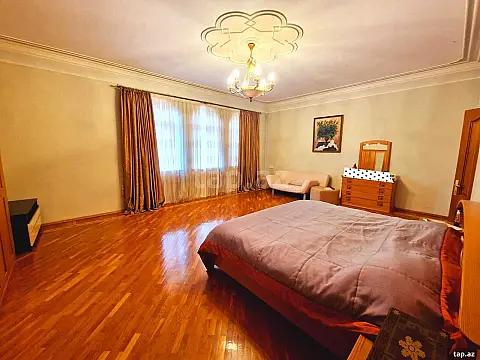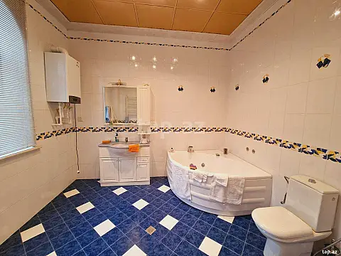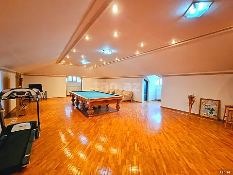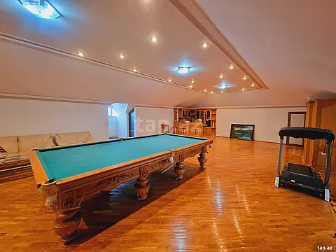 Əla təmirli! Ümumi sahəsi: 700 kv.m., Villa 8 otaq. İstilik sistemi “Kombi”, split-kondisionerlər sistemi. KATV, internet, telefon xəttləri. 3 s/q (duş-kabinə, cakuzi mini sauna, hovuz, baseni). Hər mərtəbədə eyvan. 20 tonluq su çəni və su nasosu var. Quraşdırılmış mətbəx mebeli və texnikası (mətbəx). Həyətyanı sahə, meyvə ağacları və dekor gül çiçək. Həyətində qarajı var (3-4 maşınlıq) həyətyanı sahəsi. Müşahidə kameraları.
