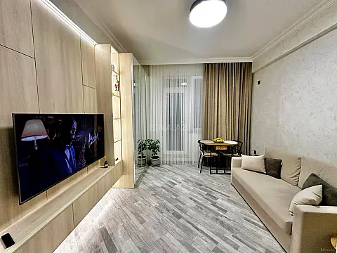 Melissa Park Prestigious Yasamal district — located between Tbilisi Prospekti and Həsən bəy Zərdabi prospekti . A premium one-bedroom apartment featuring a designer renovation in a contemporary minimalist style with Scandinavian elements and soft loft accents. . The interior is designed in a refined light color palette using high-quality materials. Natural wood textures, built-in storage systems, decorative slatted panels, mirrored surfaces, and layered LED lighting create a sense of openness, elegance, and understated luxury. The space is intelligently planned for maximum comfort and functionality without visual overload. . Fully Turnkey Equipped Built-in modern kitchen High-quality household appliances Premium-class furniture Thoughtfully designed lighting system Ready for immediate move-in . Smart Technology & Security Elevator access with Face ID system Entrance door with Face ID recognition Advanced access control system . Business-class residential complex with landscaped territory, security system, and developed infrastructure. . An ideal choice for those who value comfort, technology, and a prestigious location. Also a highly liquid investment opportunity in one of the city’s most sought-after areas.