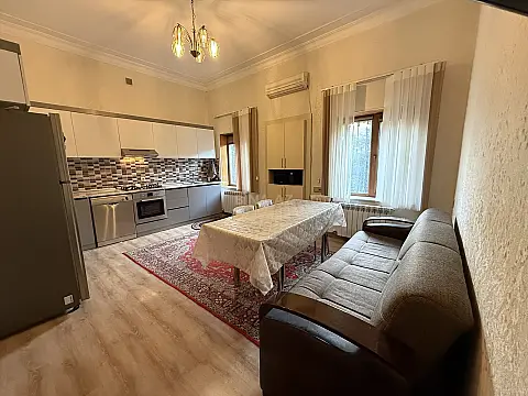 Evin 1ci mərtəsində 2 mətbəx , 2 yataq otağı, 1 geniş zal ,1 sonitar qovşaq,həmçinin 2 avtomobil üçün qaraj var.