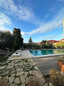 - Satış: Möhtəşəm bağ evi - Ünvan: Xəzər rayonu, Mərdəkan qəsəbəsi, mərkəzdə yerləşir. - 2 mərtəbəli + zirzəmi; - Otaq sayı: 10 - Sahəsi: 750 kv.m. - Həyət sahəsi: 23 sot - Sənədi: Çıxarış (evə, torpağa). - Təsvir: 10 otaqlı super təmirli monolit tikili bağ evi satılır. İlin 4 fəslində yaşamaq üçün hər bir şəraiti var. 2 mətbəxi - yay, qış (isti döşəmə ilə). Çox gözəl yaşıl həyəti, xaricdən sifarişlə gətirilmiş dekorativ və meyvə ağacları, filtrli daşma hovuz, mühafizə otağı mövcutdur. Qaz su işıq daimidir. ▪️1 ci mərtəbədə - zal, iş kabineti, camaşırxana, geniş mətbəxi, xol və s/q yerləşir; ▪️2 ci mərtəbədə - 4 yataq otağı (hamısında s/q yerləşir); ▪️Zirzəmidə 4 otaq və sport zal yerləşir, hündürlüyü 4 metr; Şirkət haqqı 1% (alıcıdan).