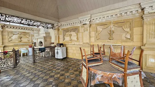 • Villa butun mebel ve texnikasi ile bir yerde satilir!!! Ekologiya postunun ve Greenville Residence yaxinligi, elit erazide Milliyonerlər məhəlləsindi, 7 sot erazide, 4 mertebeli monolit – aglayla uzlenmis, umumi sahes 850 kv m olan villa satilir. Super temir, 10 otq, doseme parket, qurasdirilmis metbex mebeli (2 metbexi), 6 sanuzel, dus kabina, kondisionerler, qaz, su, isiq daimdir, istilik sisteemi kombi, optic internet, musahide kamerasi, sauna, idman zali, qaraj, Xocasen golune menzere. Heyetde coxli meyve ve dekorativ agaclari, besedka, manqalni, muhafize ucun otaq, darvaza pult ile idare olunur. Butun senedler qaydasindadir CIXARIS var.