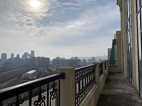 Mənzilin təsviri: • Təmirsiz • 500 m² (170 m² teras) • 8 (10 ) otaq • 2 eyvan • Hündürlük 4.40 m • 15/16 • Tam yelçəkən • Böyük vitraj pəncərələr