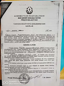 Tam hasarın içində 10 sot bələdiyyə sənədi Yarım tikilisi var kürsülü fundamentli tikili Su qaz işıq sayğacları darvazası var Yoldan 400 metr içəridədir ətrafı tam yaşayışdır Dənizə yaxındır Havası qumu superdir nə əksən bitir Təci satılır deyə ucuz qoyulub Gələcəkdə üsdünü qaldırmaq olar ikinci mərtəbəni fundament möhkəmdir