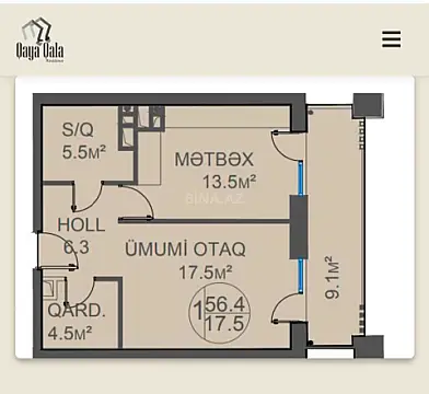 📐 Sahə: 57 kv