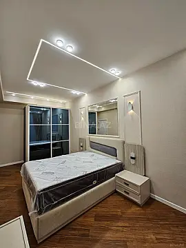 Çılçıraqlar... İsti döşəmə... Kombi sistemi... Mətbəx mebeli... Parket döşəmə... Pərdələr...