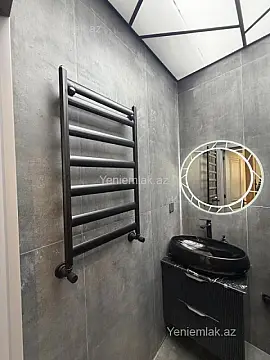 Menzil Neptun marketin arxasinda yeni tikilmish binada 10 mertebeli yashayish binasinin 4 cu mertebesinde yerleshir. 5 ay önce temir tamamlanib. Istilik sistemi kombi isti pol. Kondisioner. Qaz su ishiq daimidir. Kupcasi var . Temir zamani en bahali ve keyfiyyetli materiallardan istifade olunub . Menzil mebeller ile ve qismen elektrotexnika ile birlikde satilir.