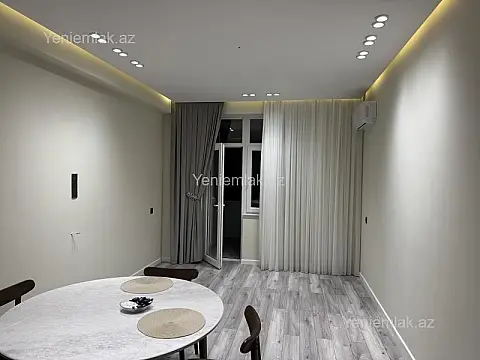 Yeni təmirdən cıxmış mənzildir.Təmirdə bahalı materiallardan istifadə edilib.Yataq otağı mebeli embawooddan alınıb,stol,stul bahalı,mətbəx aksesuarları ən keyfiyyətli markalardandır.Divan və tv yoxdur.Şəxsi mənzilimdir,özüm üçün təmir etdirmişəm. Mənzilin dənizə görüntüsü var