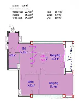 Satılır 2 otaqlı yeni tikili 75 m²