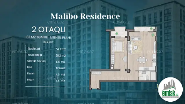 Winter City Group tərəfindən tikilən və 10 blokdan ibarət olan “Malibo Residence” layihəsi müasir dəbdəbə və rahatlığı özündə birləşdirən unikal yaşayış kompleksidir. Çıxarışlı və tam hazır vəziyyətdə olan bu layihə, yüksək həyat standartlarına cavab verən infrastrukturu və incə memarlıq üslubu ilə seçilir. Keramaqranitlə bəzədilmiş fasad kompleksi daha da fərqləndirərək ona xüsusi estetik görünüş bəxş edir.