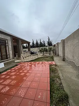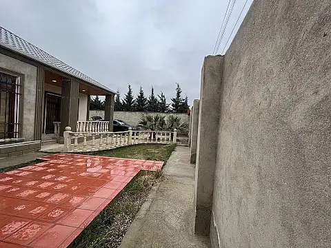 Ev 3 sot torpaq sahesinin icinde yerlesir ve 120 kvadratdir. 3 otaqdir. Otaqlardan biri tam temirlidir, amma evin qalan hissesi yarimciq temirlidir. Sened belediyyeden sehadetnamedir. Isiq, su ve qaz var. Kupca almaq asandir. Erazide internet var. Yol yeni asfaltdir ve isiqlidir. Sehere 15-20 deqiqelik mesafede yerlesir.