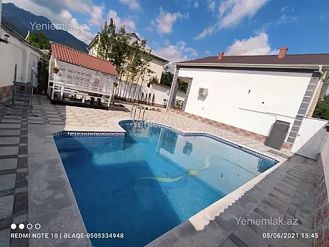 Qebele , Mirzə Fətəli Axundov k, 200kv liq evdir 1 ci mərtəbəsi hazirdir 3 yataq otagi, 1 studio metbexi var. 1 sanuzeli (evde) 2 mərtəbəsi hazir deyil - Filtrli Hovuz işləkdir. Bestka, çöl sanuzeli. 5 sot heyet. Senedli çıxarışlı evdir