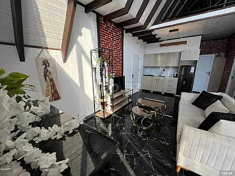Evin üstünlükləri: • Tam əşyalı və hazır biznes • Günlük kirayə üçün tam hazır vəziyyətdə • Həyətdə isti hovuz (yay-qış işləyir) • Yeraltı 7 tonluq su hovuzu • Həyətdə söhbətgah (qış üçün isti pol ilə təchiz olunub) • 24 saat kamera sistemi (telefonla nəzarət) • İnternet, Smart TV, soyuducu, paltaryuyan, tozsoran və digər əşyalar • Hər otaqda yataq otağı mebeli, mətbəxdə mətbəx mebeli