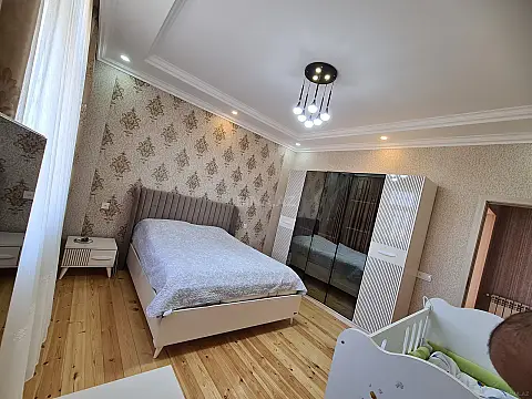 Ramanada (südçülük sovxozu) 2 sotda, cüt daşlı,8 daş kürsülü 3 otaqlı tam təmirli həyət evi.2 ayrı zirzəmisi var. Ev əsas yola (162 nömrəli avtobus xətti) 40 50 metr məsafədə yerləşir. Yaxınlıqda Oba, Cemil market, Al market var. 10 dəqiqəlik piada məsafəsində böyük mağazlar(Bolmart və Araz), məktəb və bağça yerləşir. Qaz,su və işıq daimidir, internet var. Istilik sistemi kombidir, hamam və sanuzel isti poldur. Ev işıq tənzimləyicisi(stabilizator) ilə təmin olunub. Mətbəx mebeli qalacaq. Vasitəçi deyiləm, ev özümə aiddir, özüm üçün tikdiyimə görə hər bir detala diqqətlə yanaşmışam, əlavə heç bir xərcə ehtiyac yoxdur. Sənəd kupça.