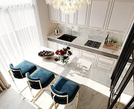 Mənzil xoş auraya malik olmaqla zövq və keyfiyyəti bir araya gətirmişdir. Açıq rəng tonlardan istifadə və işıqlandırma sistemlərinin otaqlara görə invidual yerləşdirilməsi mənzilə bir başqa görünüş bəxş edir.