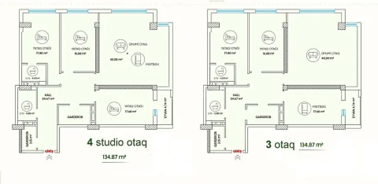 Satılır 3 otaqlı mənzil 135 m²