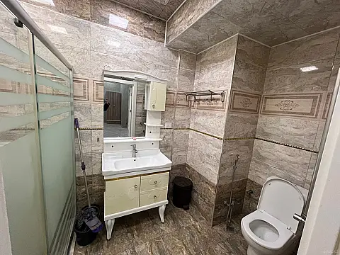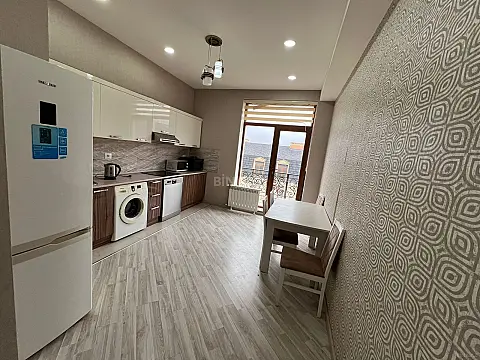 Mənzilin təsviri: • Təmirli • 144 m² • 7/6 • 3 otaq • 1 mətbəx • Eyvan • Böyük vitraj pəncərələr • Əşyalı