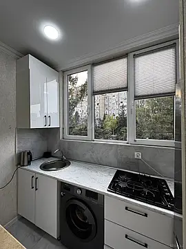 Mətbəx müasir üslubda yığılmışdır – lazımi mebel və texnika ilə təchiz olunub. Hamam və tualet birgədir, orada keyfiyyətli kafel-metlax və sanitar quraşdırmalar var. Komissiya haqqı 1%.