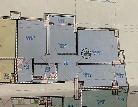 Satılır 3 otaqlı mənzil 85.7 m²