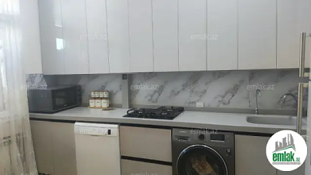 Mənzilin gözəl təmirli, işıqlı, qanuni 3 otaqlı, 2 balkonu (biri bağlı), 2 sanitar qovşağı, böyük mətbəxi və geniş dəhlizi. Təmirdə yüksək keyfiyyətli materiallardan istifadə olunub. Əşyaların bir qismi qiymətə daxildir. Çıxarışda 96kvm-dir, realda 105kvm-dir.