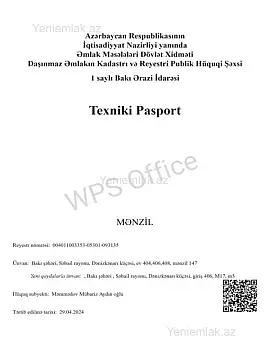Satılır 3 otaqlı yeni tikili 121.5 m²
