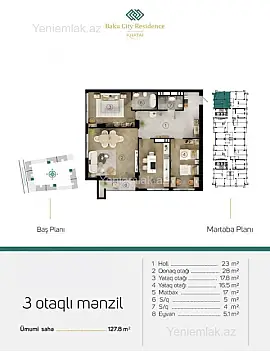 Satılır 3 otaqlı yeni tikili 127.8 m²