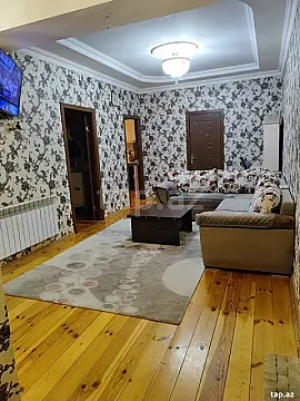 Ev Gence şeherinde Züqo şadlıq sarayının qarşısında yerləşir.3 otağa düzəlib.Her bir şəraiti var.Lifti işləyir.Eşyalı satılır.Qonaq,yataq,metbex mebelleri evde qalacaq.Müqavile ile satmaq olur.Razılaşma yolu ile.Qazı,işığı,suyu vardır.Sanitar qovşaq isti poldur.Bir sözle gir yaşa.10 mertebelinin 9 cu mertebesindedir.Şeherin gözəl yerindədir.Her terefe yaxındır.Bütün marşrutlar keçir.Mektebe,bağçaya,Beynəlxalq xestexanaya,markete yaxındır.Tecili satılır.